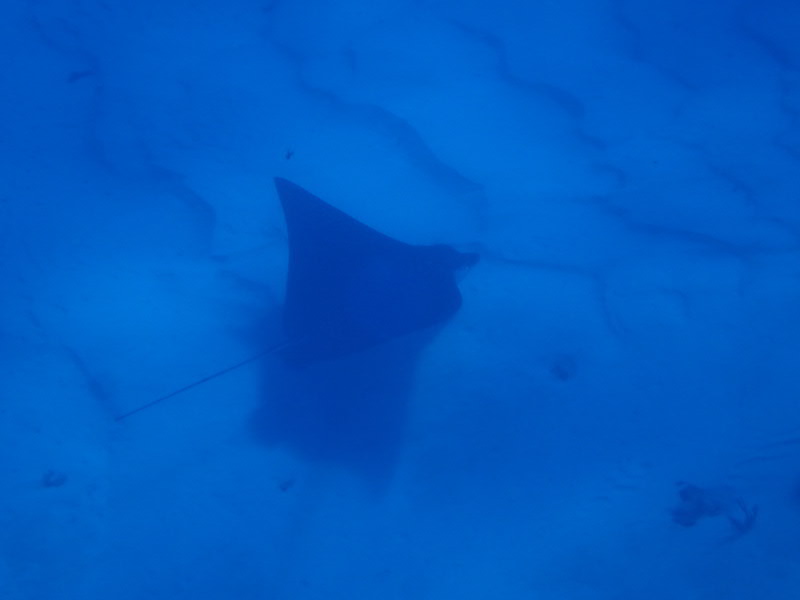 水面で船のお迎えを待っていると浅場にめちゃくちゃでかいイーグルレイ!